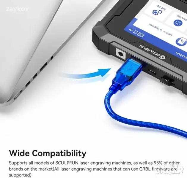 Пълна съвместимост: сензорният екран SCULPFUN TS1 е напълно съвместим. Има USB порт и може да се използва чрез свързване на USB кабела на машината за гравиране към сензорния екран. Той е съвместим с 95% от машините за лазерно гравиране на пазара, като SCULPFUN S9, S10, S6, S6 Pro, S30 Series, S30 Ultra Series, SF-A9.