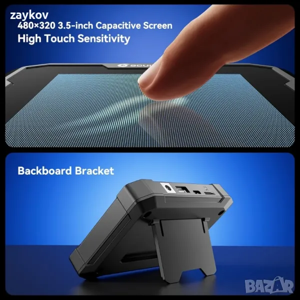 3,5-инчов капацитивен сензорен екран: машината за лазерно гравиране TS1 разполага с 3,5-инчов капацитивен сензорен екран, който предоставя на потребителите ясно изживяване при четене и използване. И показва необходимите функции чрез интуитивен визуален интерфейс, който предлага по-плавно докосване в сравнение с резистивния сензорен екран.