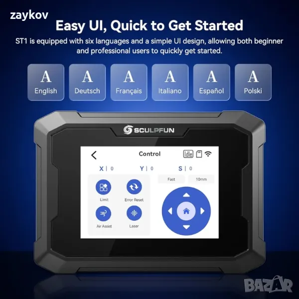 SCULPFUN TS1 машина за лазерно гравиране със сензорен екран
