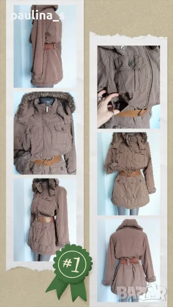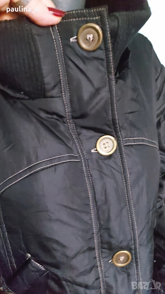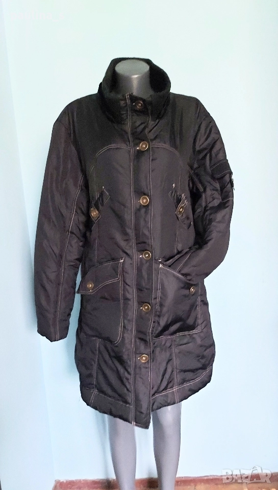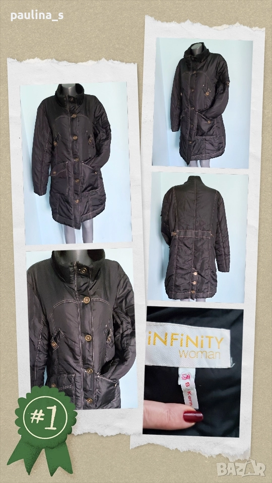 2️⃣. Колаж / 2XL / 3XL - "Infinity woman". Цената е крайна, без пазарлъци 59,99лв / 30 евро. Черно марково яке тип парка с контрастни тегели, втален силует, два външни предни джоба, златисти копчета, малък джоб на ръкава. Дрехата е много топла и ефектна, 44 / 46EU.