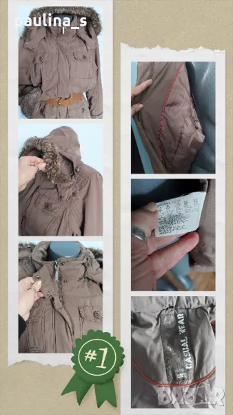 1️⃣. XL / 3XL "Cecil". Цената е крайна 59,99лв / 30 евро. Топло яке тип парка с качулка, хастар и вата. Декорациите са характерни за бранда, спортен модел и стил. Има външни обемни джобове, декоративни елементи, брандирани копчета и цип. Коланът е моя хрумка, защото е голям размер и не стои подобаващо на манекена. Без дефекти.