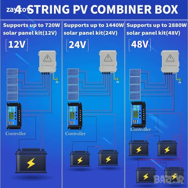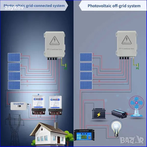 Широк обхват на приложение: PV комбинаторната кутия е подходяща за фотоволтаично производство на електроенергия, свързано с мрежата, както и за генериране на енергия извън мрежата и системи за съхранение на енергия, съвместими с всяка марка слънчеви панели и батерии
