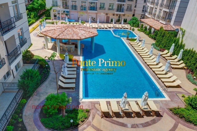 Предлагаме за продажба напълно обзаведен и оборудван апартамент с една спалня и две бани разположен на втори етаж в елитеен комплекс . Апартаментът се състои от: всекидневна с мека мебел, голям гардероб, телевизор,климатик, маса за хранене със столове, кухненски бокс с долни и горни шкафове, мивка, плоча с 2ка котлони, абсорбатор, фурна, пералня, хладилник, баня с душ кабина и тоалетна; отделна спалня с легло, гардероб, телевизор с баня с душ кабина и тоалетна; тераса с изход от всекидневната.Жилищна площ: 44,17 кв.м., общи части: 10,41 кв.м., обща площ: 54,58 кв.м. Ползването на закрит басейн, парна баня, финска сауна с хималайска сол, инфрачервена сауна, шоково ведро, зона за релакс с шезлонги в СПА центъра в комплекс Изида Палас е включено в таксата поддръжка и е безплатно в часовете от 16:00 до 18:00 за собствениците.