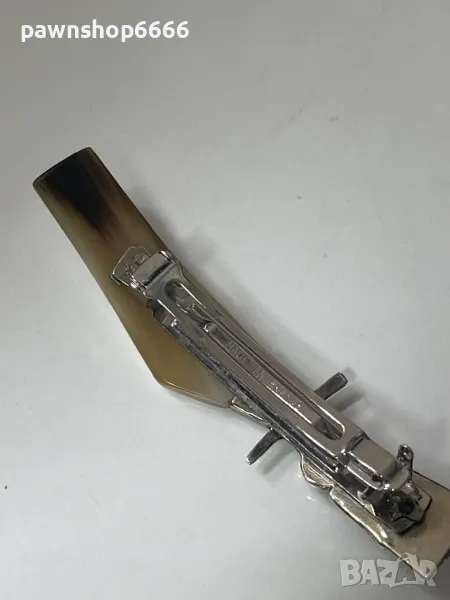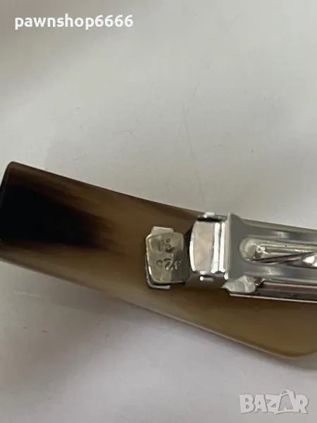 🦌 Елегантна сребърна фиба с рог и корнеол – френски механизъм 🦌