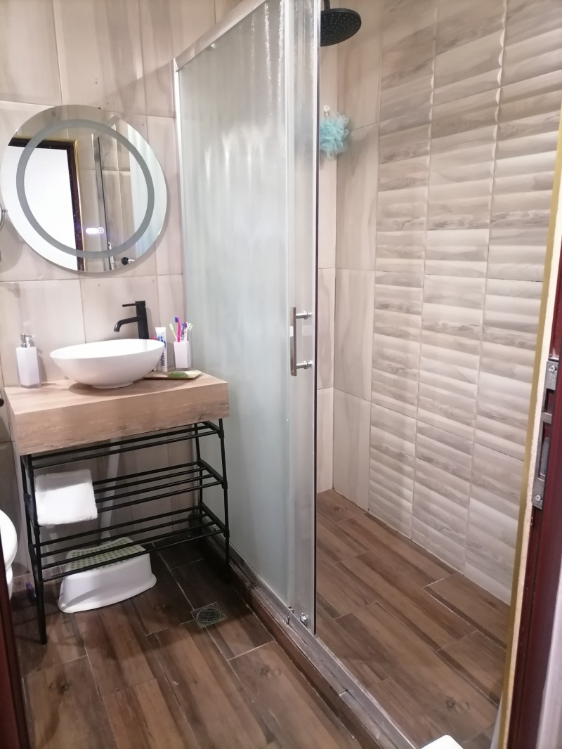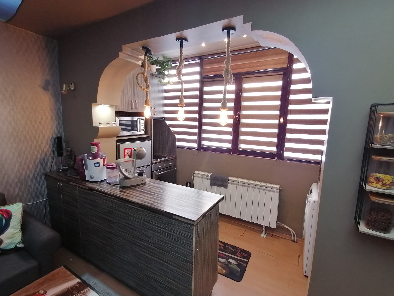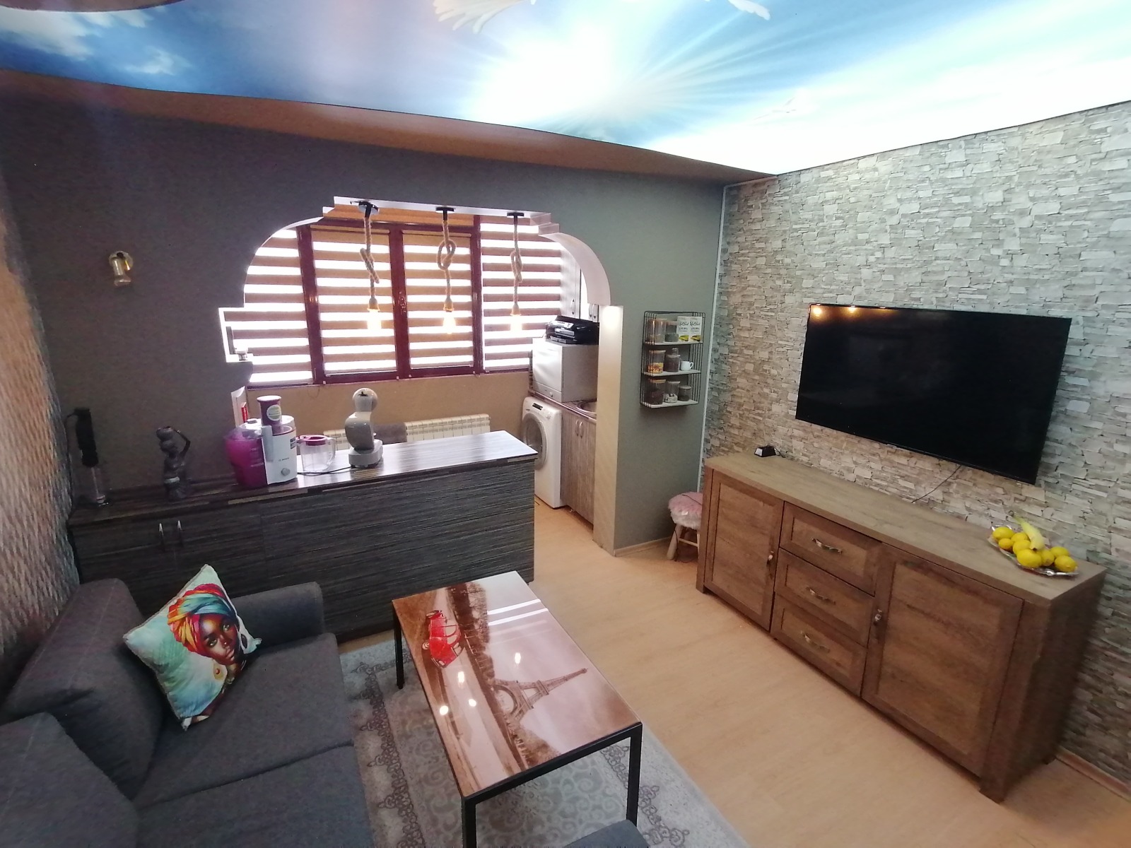 Разпределението на имота е дневна с кухненски бокс, 2 спални, баня с тоалетна и тераса. Завършен е с висококачествени материали - подови настилки от ламиниран паркет, гранитогрес , PVC дограма и интериорни врати. Продава с цялото обзавеждане, което позволява незабавно нанансяне без допълнителни разходи!