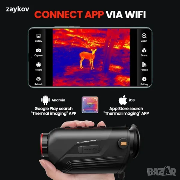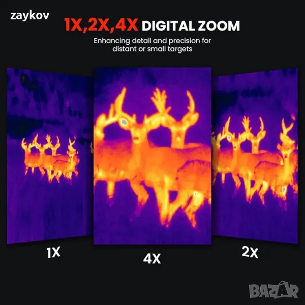 Подобрено увеличение и достатъчно място за съхранение на изображения: С функция за 4x увеличение и щедри 16 GB място за съхранение на изображения, тази монокулярна технология за термично изображение дава на потребителите гъвкавост при заснемане и съхраняване на важни изображения. Тази функция е особено полезна в различни ситуации, позволявайки на потребителите да се адаптират към различните нужди от увеличение и да гарантират, че ключовите изображения се съхраняват безопасно за последващ анализ или споделяне.