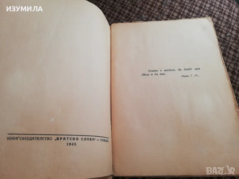 Антикварно издание. Много добро състояние, пожълтели от времето листи. Ако търсите нещо друго, което не откривате в обявите, пишете ми. Лично предаване е възможно за Казанлък и Стара Загора, иначе изпращам с Еконт или Спиди с опция преглед, за чужбина само с предварително плащане.