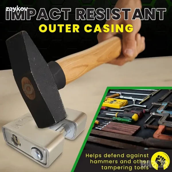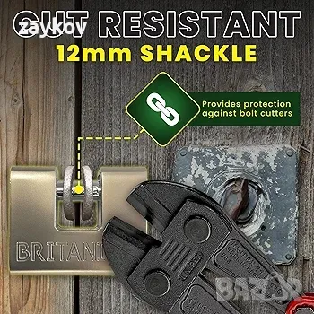 12 мм скоба от закалена стомана, устойчива на срязване - скобата е термично обработена, за да увеличи твърдостта и устойчивостта на срязване, като помага за предпазване от повреда от резачки за болтове.
