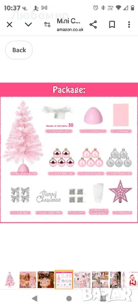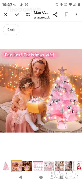 Мини коледни елхи със светлини, Migaven 2 фута/60 см розова настолна коледна елха със звездни орнаменти Led струнна светлина за Направи си сам настолна коледна украса.
