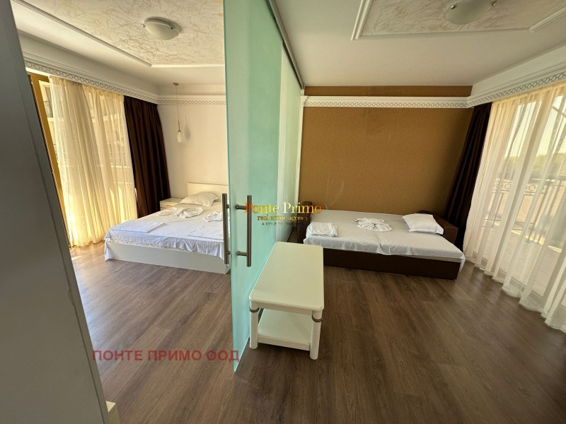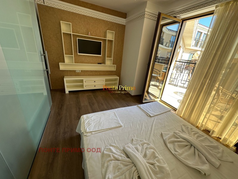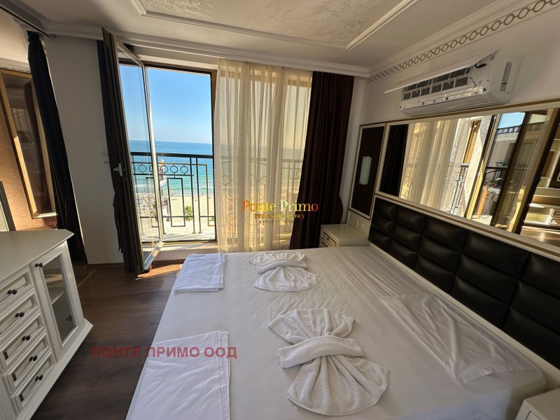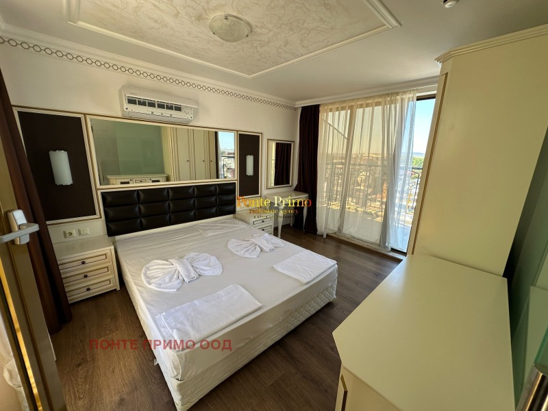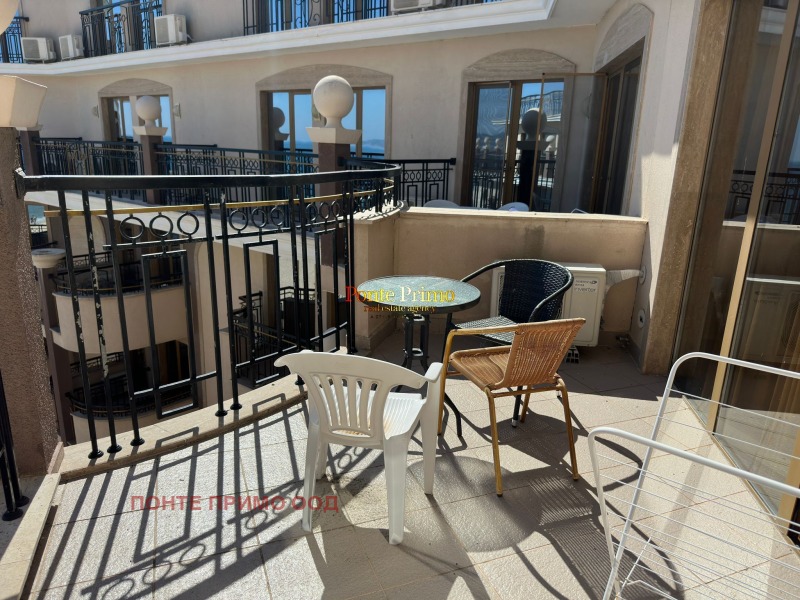 Предлагаме за продажба обзаведен тристаен апартамент в стилен ваканционен комплекс на самичт бряг на морето. Комплексът е разположен в близост до много от забавленията, ресторантите и магазините на курорта както и единствените защитени пясъчни дюни. Районът е известен с приятния си климат, фин пясък и чисто море. Той предлага отлични възможности за плаж и практикуване на различни водни спортове, риболов и разглеждане на културни и исторически забележителности в близкия град Несебър, който отстои на 1 км от комлесса ш които се намира имота. Апартаментът се намира на седми не последен етаж и се продава напълно обзаведен и оборудван с дизайнерски мебели произведени по поръчка и техника от най-висок клас Състои се от просторна всекидневна с кухненски бокс, 2 спалня, 2 бани с тоалетна и 2 тераси. Комплексът разполага с АКТ 16 и самостоятелни партиди за електричество и вода.