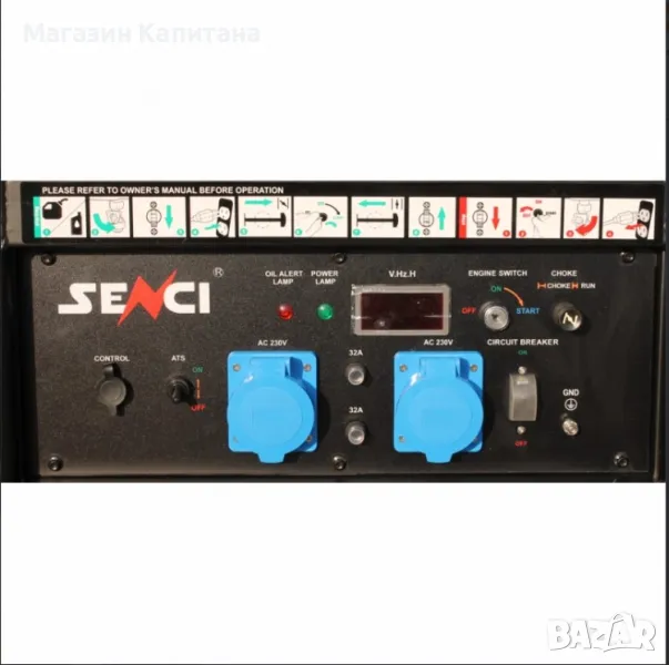 Бензинов монофазен генератор SENCI SC-13000 EVO ATS разполага с максимална мощност 11 kW и обем на резервоара 45 л. Мощността на двигателя е 20 к.с., а оборотите 3600 об/мин. Агрегатът включва AVR регулатор на напрежението и ATS, осигуряващ стартирането му при прекъсване на тока. Устройството е с вграден датчик, сигнализиращ ниско ниво на маслото. Панелът е водоустойчив и прахоустойчив, а дисплеят показва броя на часовете, честотата и волтметъра. Генераторът има стабилна рамка и транспортни колела.