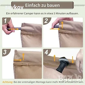 [Лесно за изграждане] Можете да спестите повече време и енергия, за да се насладите на пътуването си. Поставете 2 дълги опорни пръта в двата ръкава на