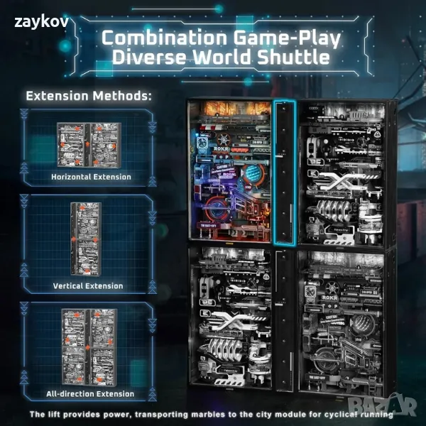 Cyberpunk пластмасови мраморни комплекти с модели на жилища: Вдъхновен от видео играта, екипът на ROKR надгради традиционните мраморни писти с Cyberpunk дизайн. Мраморите ще преминат през 187 см дълго пътуване на футуристични сцени.6 комплекта светлини, 10+ светлинни ефекта: Докоснете превключвателя веднъж, за да оставите мраморите да работят със светлинни ефекти, светлината ще се промени, когато мраморът премине, след това докоснете втори път, за да видите само режима на изглед. Третото докосване е за изключване.Перфектен избор за подарък със забавление „Направи си сам“ за играчи и цялото семейство: Достойно време да сглобите този комплект за вас или вашата любов, за да не само спестите пари от предварително направени модели, но и да добавите малко забавление към работата и живота си, тъй като е посветен на вашата страст и търпение в собствените ви произведения на изкуството.Свободно разширяване с други ROKR пластмасови мраморни релси във вертикална и хоризонтална посока: този модел може да бъде свързан с други продукти от същата серия чрез повдигащи модули.
