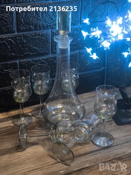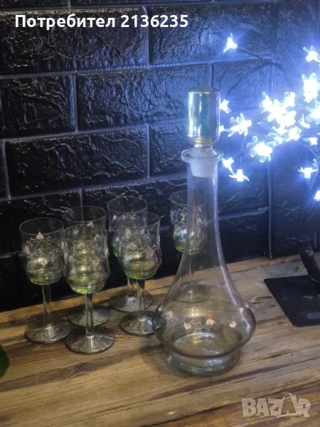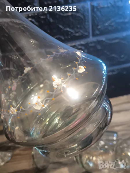 Продавам изящен винтидж сервиз, включващ гарафа и чаши с огледална глазура в сребристо-зеленикаво-сиви нюанси. Ръчно декорирани с фин флорален мотив, тези съдове придават елегантност и стил на всяка трапеза. Подходящи за специални поводи или като акцент в интериора.