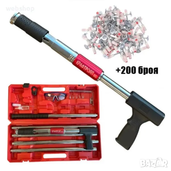 Професионален пистолет за пирони KraftRoyal с очила, ръкавици и 200 бр. пирони, снимка 1 - Други инструменти - 49220704 Професионален пистолет за пирони KraftRoyal с очила, ръкавици и 200 бр. пирони, снимка 2 - Други инструменти - 49220704 Професионален пистолет за пирони KraftRoyal с очила, ръкавици и 200 бр. пирони, снимка 3 - Други инструменти - 49220704 Професионален пистолет за пирони KraftRoyal с очила, ръкавици и 200 бр. пирони, снимка 4 - Други инструменти - 49220704 1/4
