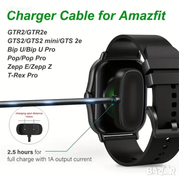 Зарядно за Amazfit GTR2/GTR 2e/GTS 2 Mini/GTS 2e/BIP U/BIP U Pro/Pop Pro/Zepp E/Zepp Z/T-Rex Pro, Ly