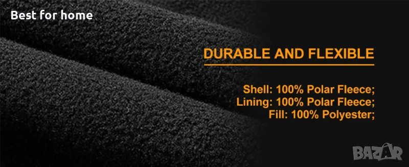 Черупка: 100% полар; Подплата: 100% полар; Пълнеж: 90% полиестер + 10% спандекс