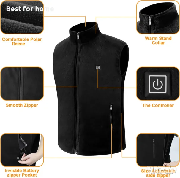 【УЖОДЕН ЗА КОЖАТА МАТЕРИАЛ】 Отопляемата жилетка е изработена от поларено руно, спандекс и полиестер с антистатични характеристики и отлично запазване на топлината. не само леки, но и топли, устояват на студа и същевременно поддържат модата.