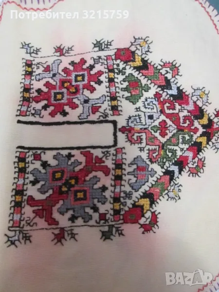 19век ръчна бродерия, каре, покривка,цигулка,фолк мотиви