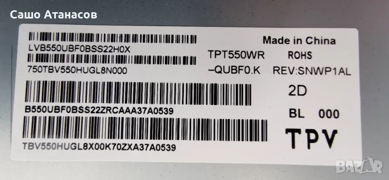 T-Con Board: BOE / HV550QUBF70 44-9771690B / 55UHD 6+0 47-6021365 2019.12.11 - 60лв