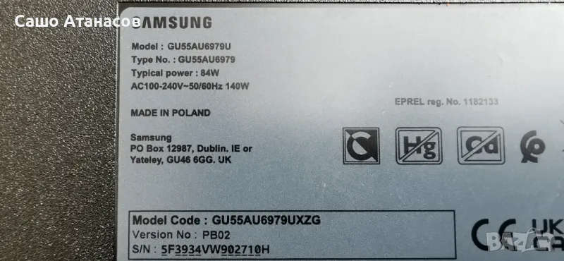 Модули от телевизор SAMSUNG GU55AU6979U със счупена матрица (панел TPT550WR-QUBF0.K REV:SNWP1AL )