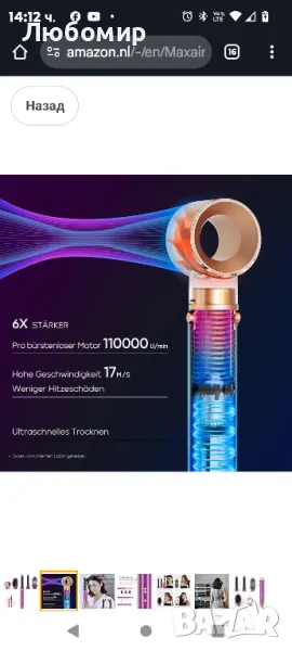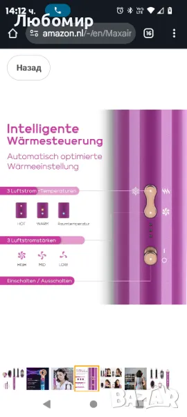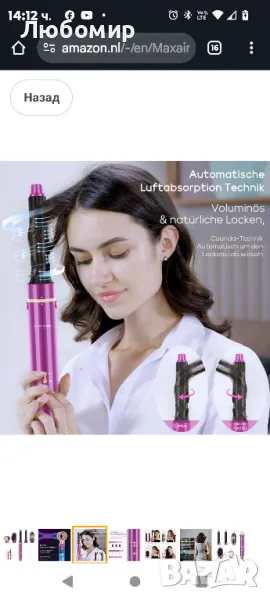 Високоскоростен ток: Саморазработеният високоскоростен мотор с до 110 000 оборота в минута произвежда бърз и мощен въздушен поток със скорост до 17 m/s, 6 пъти по-силен от четка с горещ въздух. За ултра-бързо изсъхване без увреждане от топлина, намалете времето за оформяне наполовина. Иновация за необикновено стайлинг изживяване.Автоматична абсорбираща лента: Силен въздушен поток тече от машата и непрекъснато образува въздушен поток по посока на часовниковата стрелка около машата, което подобрява ефекта на коанда и гарантира, че косата автоматично прилепва към повърхността. Създава обемни, гладки и естествени къдрици без екстремно нагряване.