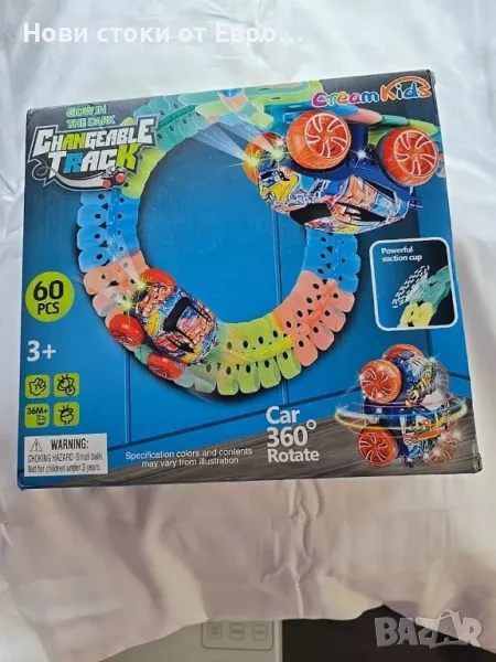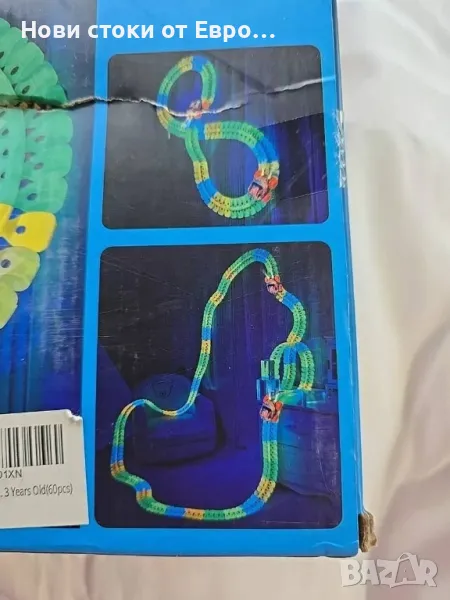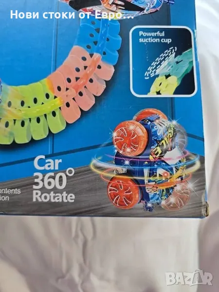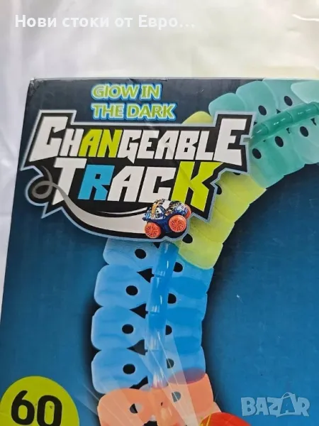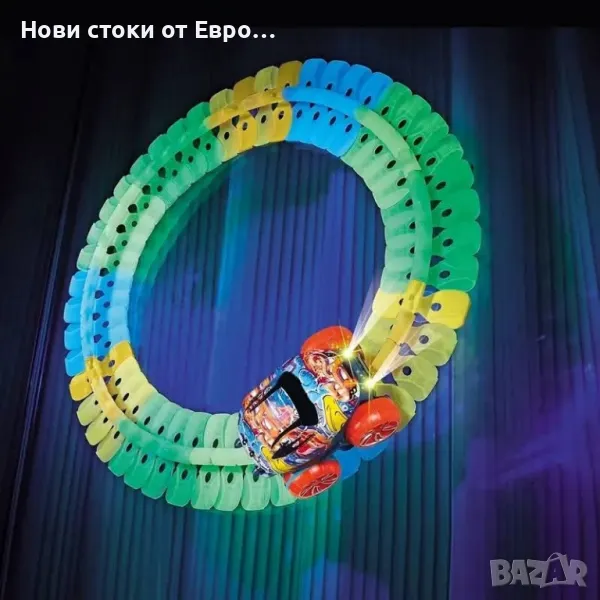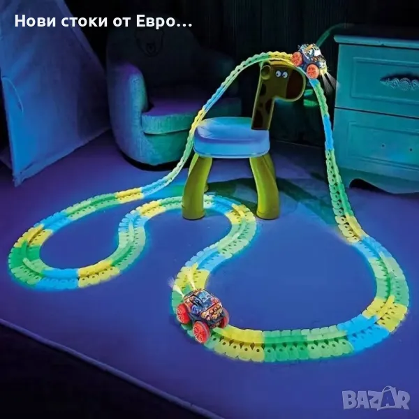 Светеща в тъмното сменяема състезателна писта, гъвкав комплект от 60 части за състезателни коли, НОВ60 части светещи в тъмното Писта с превозно средство. Чисто нова. Може да се състезава както по стена, така и по пода.