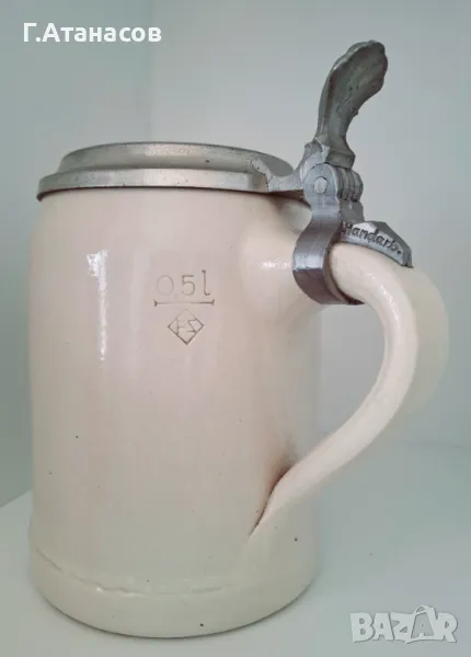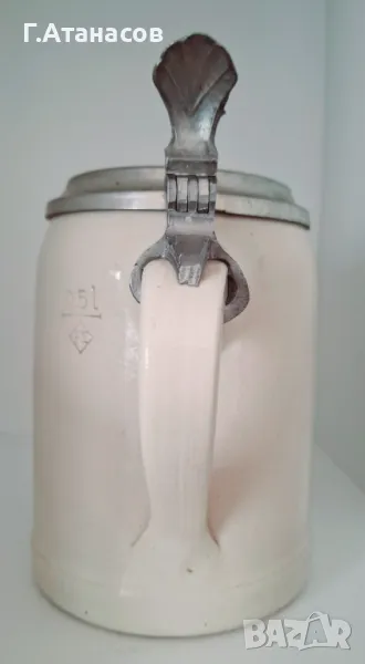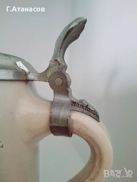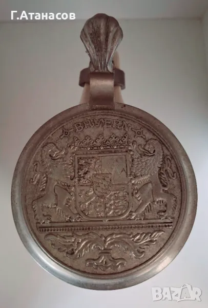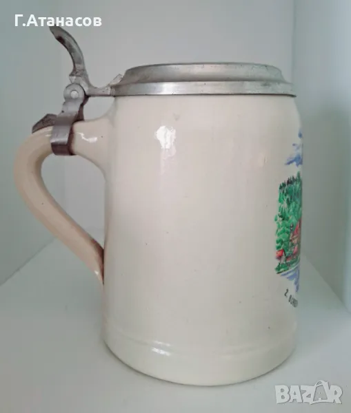 Старинна немска порцеланова халба ERBO ZINN, с гравиран капак Bayern → Обява 49222523