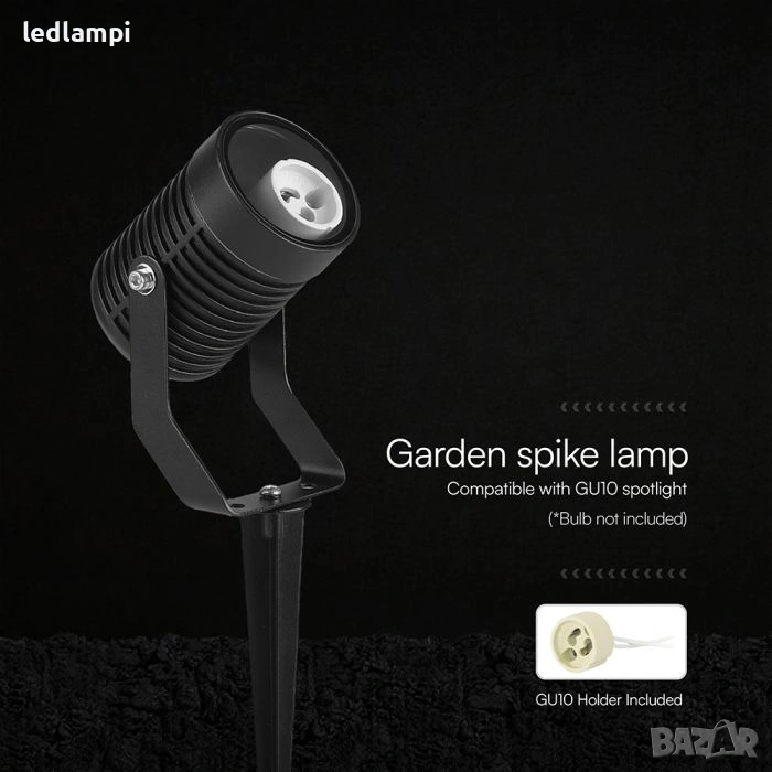 LED Градинско Тяло С Шиш GU10 IP65 Черно