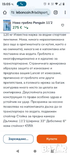 Липсва греблото.11'2 MSL модел, един от най-големите на пазара. Тегло на гребец до 120 кг Известна марка за водни спортове Страничната армировка образува защита от износване и предпазва вашия от износване, причинено от греблото или други препятствия, а голямата мрежа за багаж осигурява много място за цялата ви екипировка. Двуслойната релсова конструкция го прави особено здрав и устойчив на удар. Презрамка за носене позволява на напомпаната дъска да се транспортира по водата. подвижен спойлер Стойка за предна камера.Дължина: 11'2 Ширина: 33'' Дебелина: 6'' нова стойност €559.