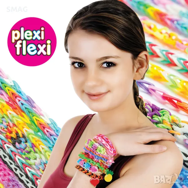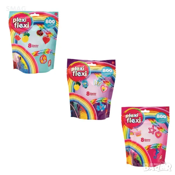 Комплект за изработка в 3 различни цвята ластици и 3 различни дизайна на аксесоари за декорация. Създайте уникални и цветни гривни, пръстени и други аксесоари и ги направете още по-впечатляващи, като добавите цветни аксесоари в уникален дизайн. Идеален за деца, които обичат занаятите и искат да изразят своята креативност. Комплектът включва: 800 цветни гумени ленти, 8 произволни аксесоара, кука за плетене на една кука, мини стан, 80 щипки и ръководство за употреба. Всичко това в затваряща се чанта в 3 цвята, която ви позволява да съхранявате всичките си ластици и аксесоари и да ги носите със себе си навсякъде, без да ги губите.