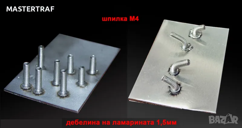 Дебелина на алуминиевата ламарина, на която се заваряват шпилките, трябва да бъде над 0.5мм.