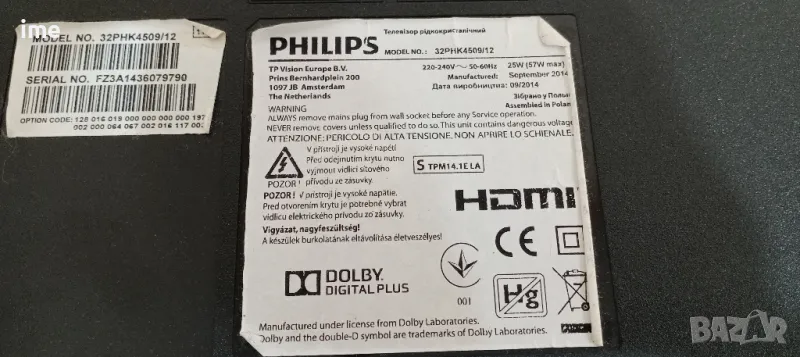 Power Board 715G6197-P01-003-002H. Свален от Телевизор Philips 32PHK4509/12. → Обява 49223694