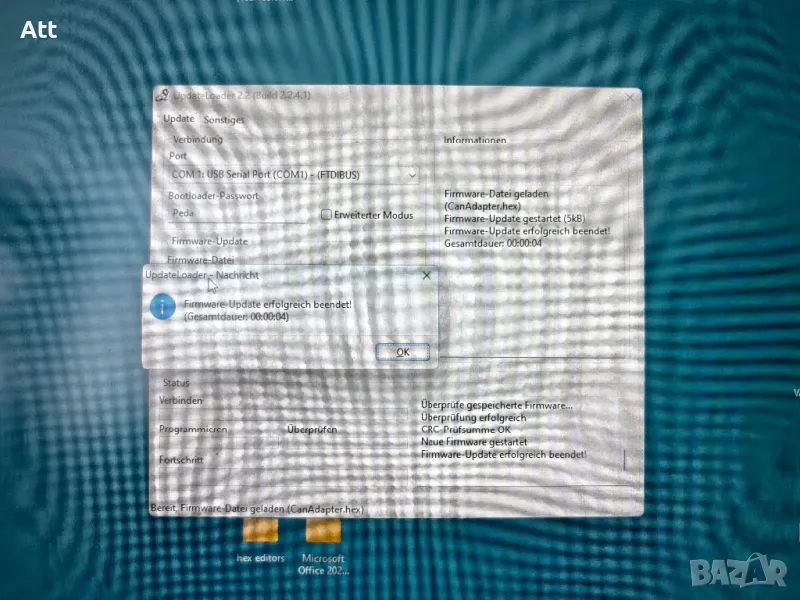 Кабела е флашнат с bimmergeek enhanced firmware , след тази модификация интерфейса работи доста по бързо в сравнение с китайския бъгав фирм и не прецаква модули по колата при препрограмиране и кодиране.