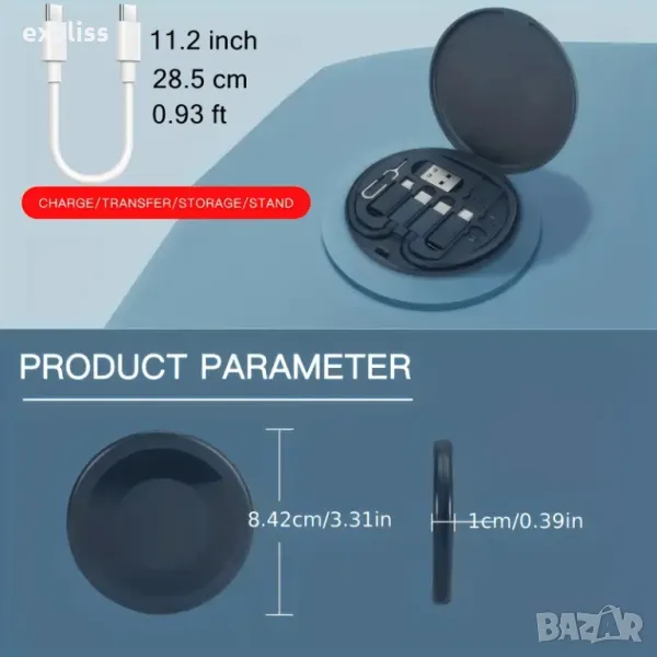 - Всичко в едно: Компактен и удобен комплект, съдържащ всичко необходимо за зареждане, свързване и прехвърляне на данни.