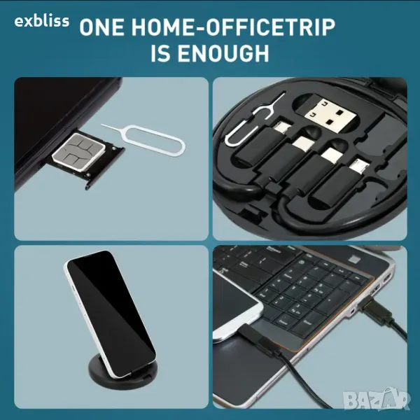 - Многофункционалност: Освен за зареждане и прехвърляне на данни, комплектът предлага и допълнителни функции като съхранение на карти и държач за телефон.