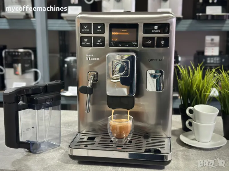 Кафемашина Philips Saeco Exprelia- Напитки: Еспресо, Кафе, Дълго Кафе, Капучино, Лате макиато, Горещо мляко, Гореща вода