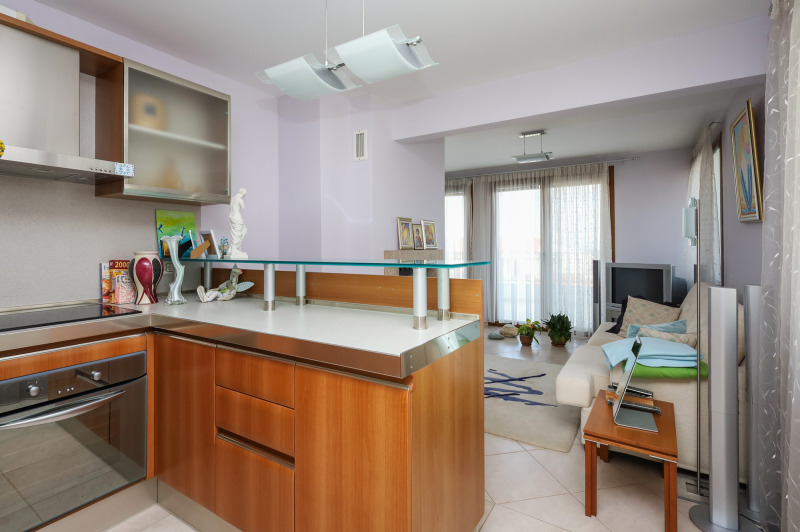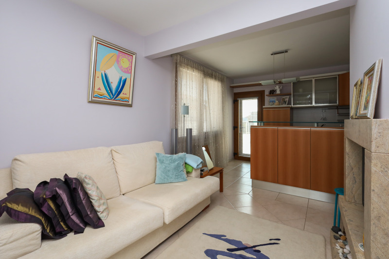 - 2-ри етаж (площ 131,93 кв. м) обширна дневна с камина, свързана чрез вита стълба със зимната градина от етаж 1, трапезария, кухня и санитарен възел, просторна тераса с прекрасна гледка към морето;