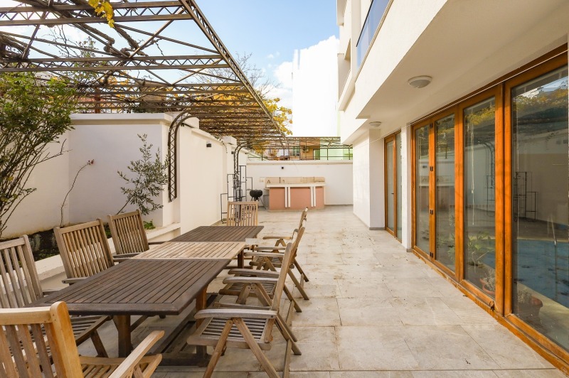- партер (1-ви етаж, площ 121,93 кв. м) дневна с камина; зимна градина с достъп към голяма тераса веранда с панорамна гледка към морето и града; на този етаж има басейн, сауна и санитарни помещения;