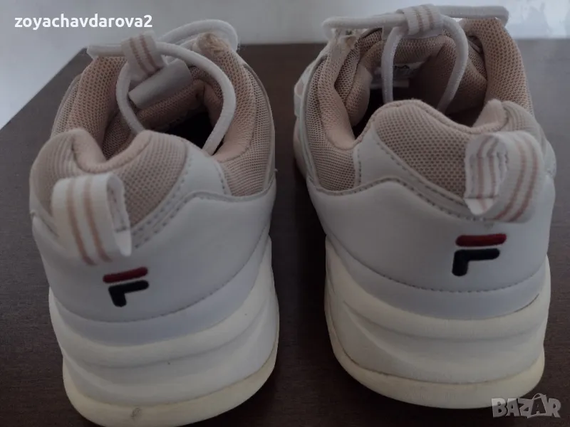 МАРКА FILA, EUR 39, ЦВЯТ: БЯЛ, ЦВЕТЕН, САЯ - ИЗКУСТВЕНА КОЖА. СТЕЛКА - МАТЕРИАЛ ВЪТРЕШНА ЧАСТ НА ОБУВКАТА - ПЛАТ. ПОДМЕТКА - ВИСОКОКАЧЕСТВЕН МАТЕРИАЛ. ЗАКОПЧАВАНЕ С ВРЪЗКИ, ЗАОБЛЕНИ ВЪРХОВЕ, ЦЯЛОСТНА ВИСОЧИНА НА ОБУВКАТА 13 СМ. ВИСОЧИНА НА ПОДМЕТКАТА В ЗАДНАТА ЧАСТ 3,5 СМ, ТЕЖЕСТ НА ОБУВКАТА 274 ГР, СТЕЛКА 25 СМ.