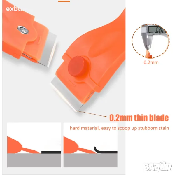 Тази стъргалка е идеалният инструмент за почистване на стъклени повърхности като прозорци, огледала, автомобилни стъкла и други гладки повърхности от упорити замърсявания като лепило, стикери, засъхнала боя, мазилка, варовик и други. Тя е удобна, лека и ефективна, което я прави незаменим помощник в домакинството, офиса или при автомобилната поддръжка.