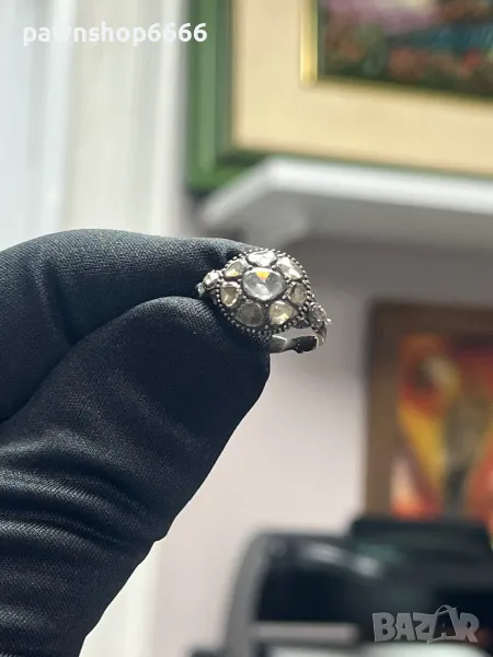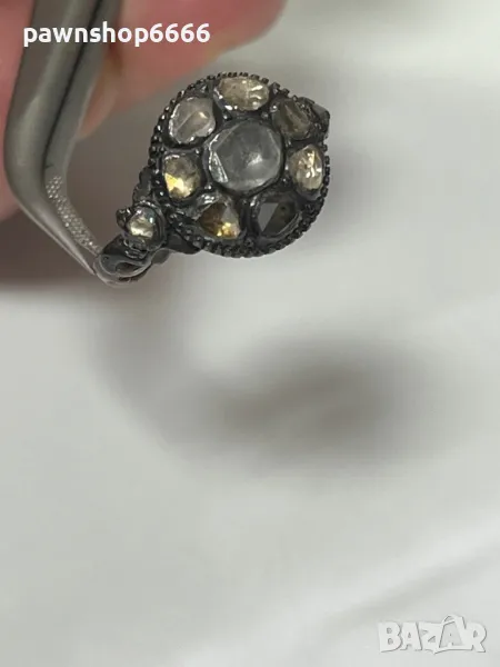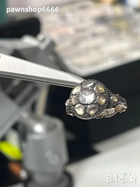 🔹 Диаманти: Голям централен диамант + по-малки диаманти (Rose-cut)
