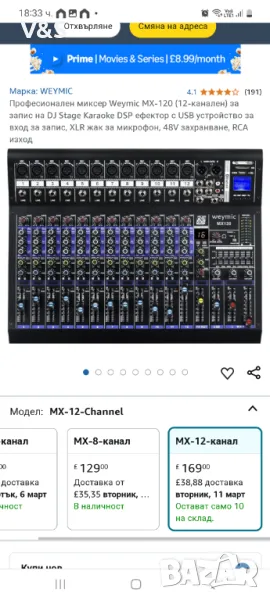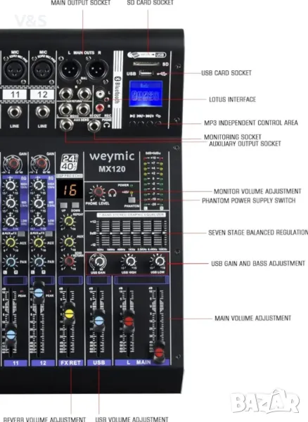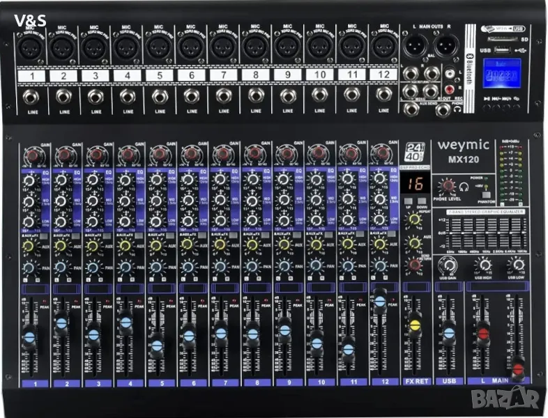 Професионален миксер Weymic MX-120 (12-канален) за запис на DJ Stage Karaoke DSP ефектор с USB устро