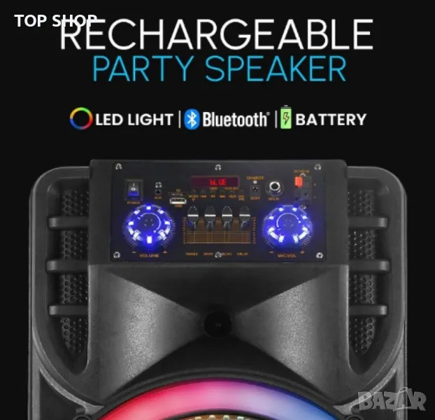 караоке тонколона е чрез Bluetooth, което позволява лесно свързване с смартфони. Размерите на артикула са 35 x 36 x 85 см, което го прави подходящ за различни пространства.