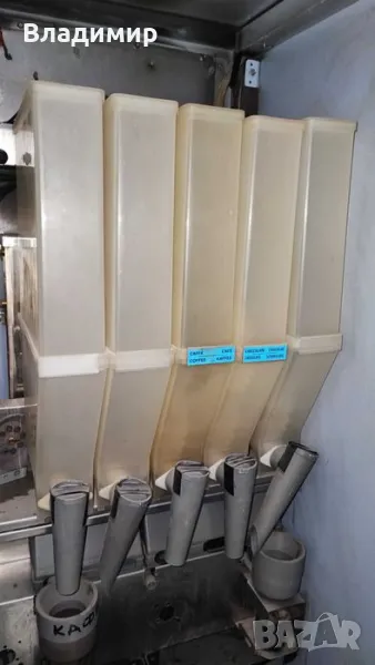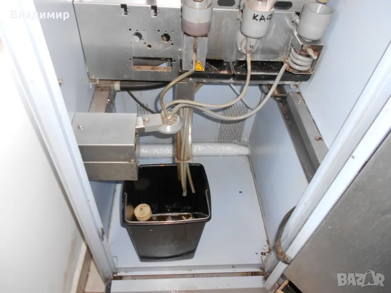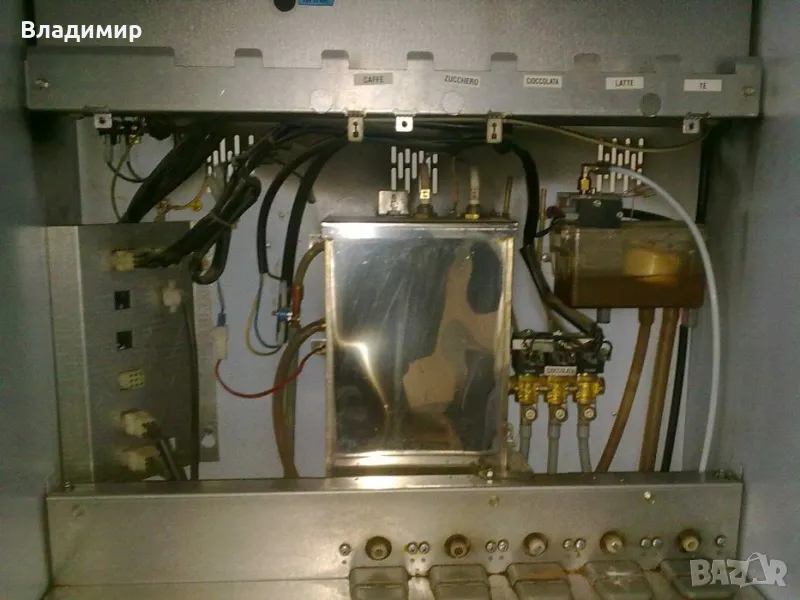 На части кафеавтомат Bianchi Sirio New за разтворими напитки. Металния корпус на машината с вратата с бравите /необорудвани/- 90лв. голяма платка с релетата, Трансформатор, редуктор прахове /мотори на кантите/, бойлер разтворим, лапа механизъм, чашков механизъм заедно с тунелите и капака на чашите, канистри, пластмаси, кабели и др. Продадени са клавиатурa, монетник, казанче вода.
