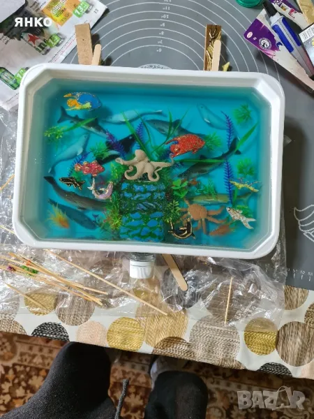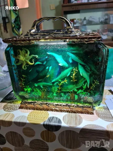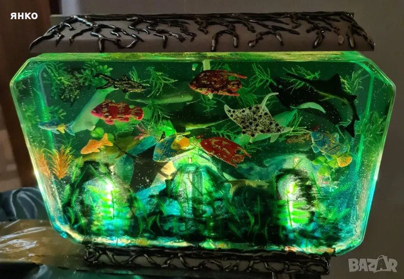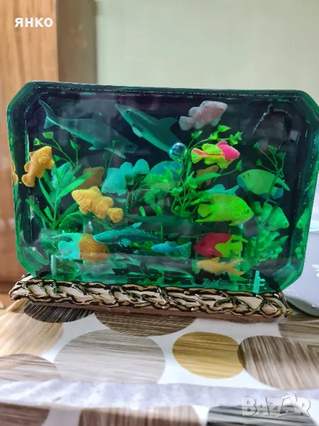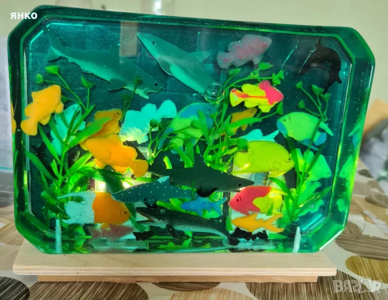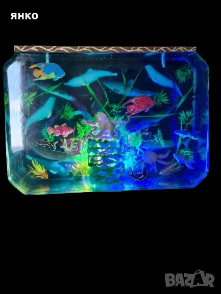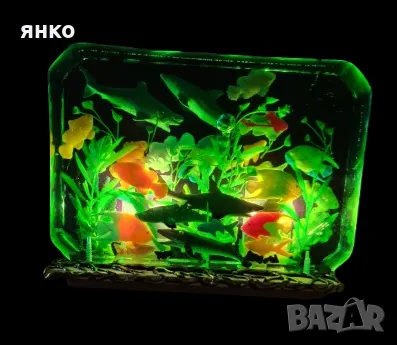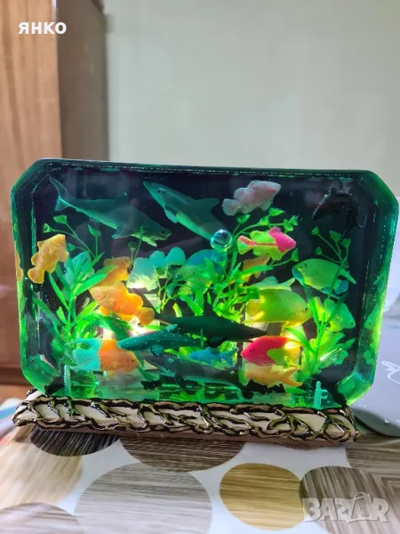 изработвам нощни лампи...с подобен декор...зависи кой какво иска...това са примерни..изображение и цена от 100 до 300лв. за по габаритните модели при всеки модел има различен разход на смола... повечето изработки са тип аквариум ..осветлението се захранва с 5 волта зарядно за телефони,някои имат батерия,други не..зависи кой какво иска за въпроси на лично съобщение...в момента няма наличност на моделите..изработват се по заявка...само за гр.варна...не пращам по куриер..последната снимка е часовник кварцов...пак светещ...има си бутон за вкл.и изкл.батерията за светлината е зареждаща..буксата за заряд е C TYPE ..другата за часовника си е нормална...два пъти..АА.. медната верижка за часовник е със сребърни фигурки..дракони,но не се продава..и тя е по поръчка...но е лична и се ползва...за нормализиране на кръвното...
