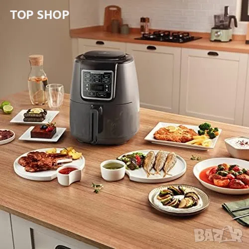 Този фритюрник е с голям капацитет от 4 литра, което ви позволява да приготвяте здравословни и вкусни ястия. Той може да се използва за приготвяне на здравословни пържени картофи, домашно кисело мляко, сушене на зеленчуци и плодове, както и за печене на скара и готвене като във фурна. Забележително е, че може да се използва и за приготвяне на задушени ястия, което го отличава от много други фритюрници. Усъвършенстваната циркулация на горещия въздух и технологията Less Fat изискват само малко количество олио за готвене.