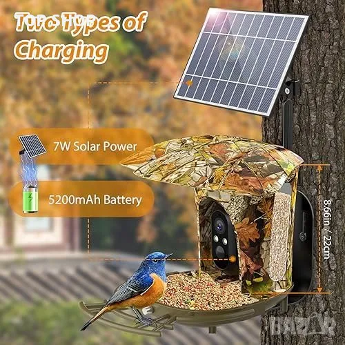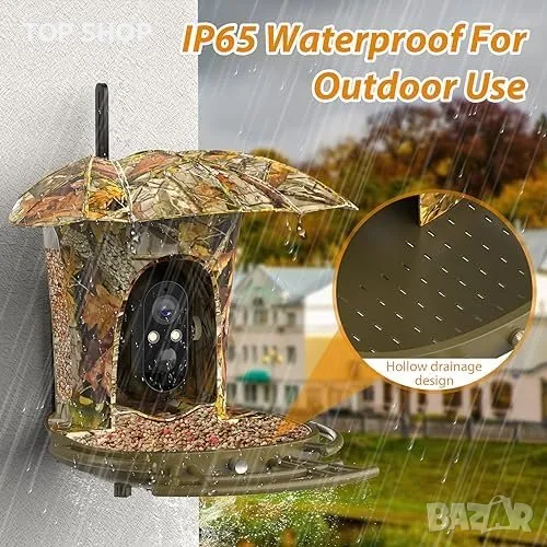 Нова хранилка за птици с Камера за наблюдение 1080P 64G Автоматично заснемане запис на видеоклипове