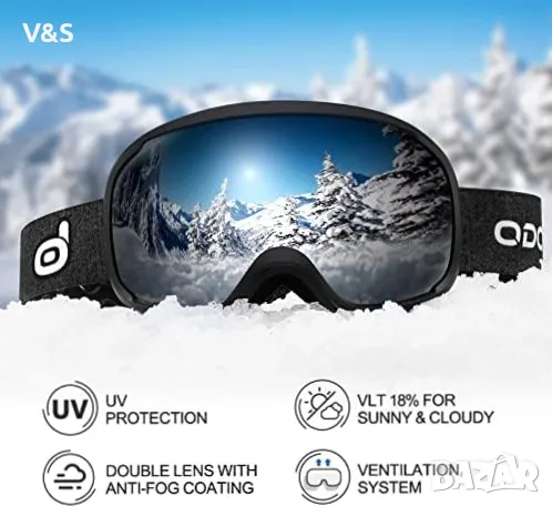 Ски каска Odoland със ски очила за ски и сноуборд Регулируем размер с антифони за мъже жени тийнейдж