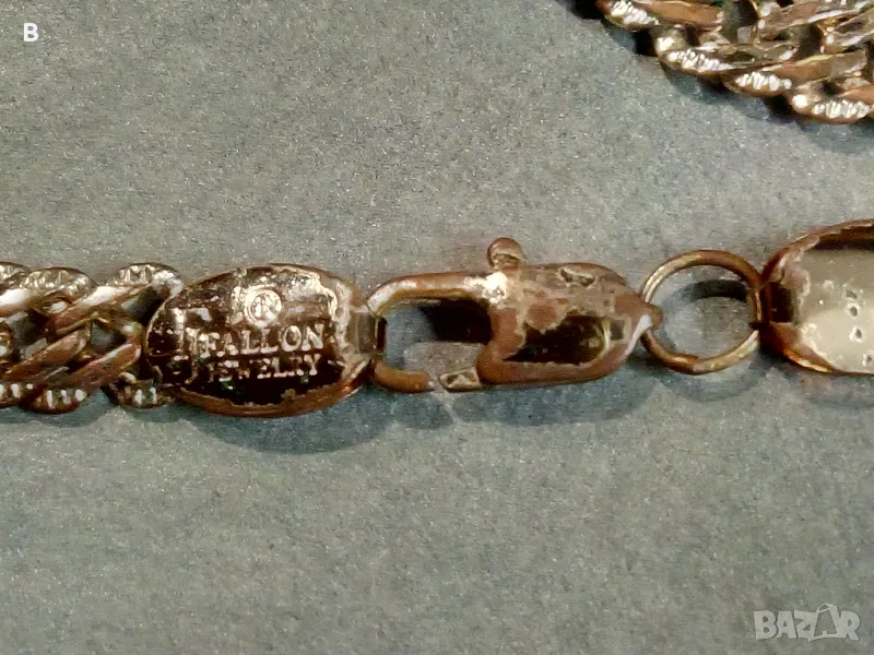 В прилично състояние на китайската фирма Fj fallon jewelry, модел Rombo hammered chains plated in 14K Gold. Дължина 55 см, ширина 5,4 мм. На места позлатата се е поизстрила.
